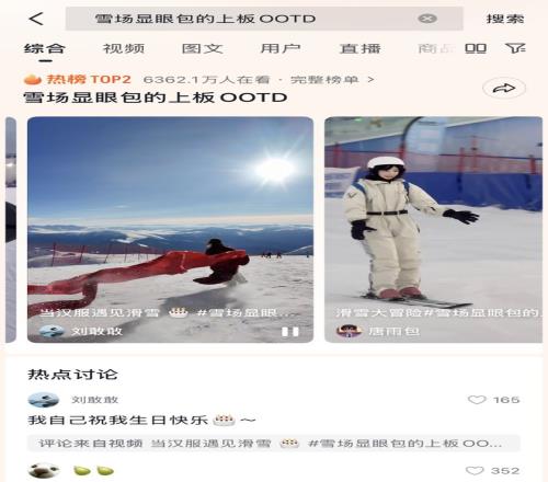 在抖音上,滑雪已从一项专业运动升级为一种生活方式与时尚表达,即让大家卸下传统滑雪繁重的装备与竞技压力,选择饱和度低、设计简约的轻量化雪服装备,实现从城市到雪场的无缝衔接,回归滑雪最本真的快乐,这也是“轻装滑”的核心本质。